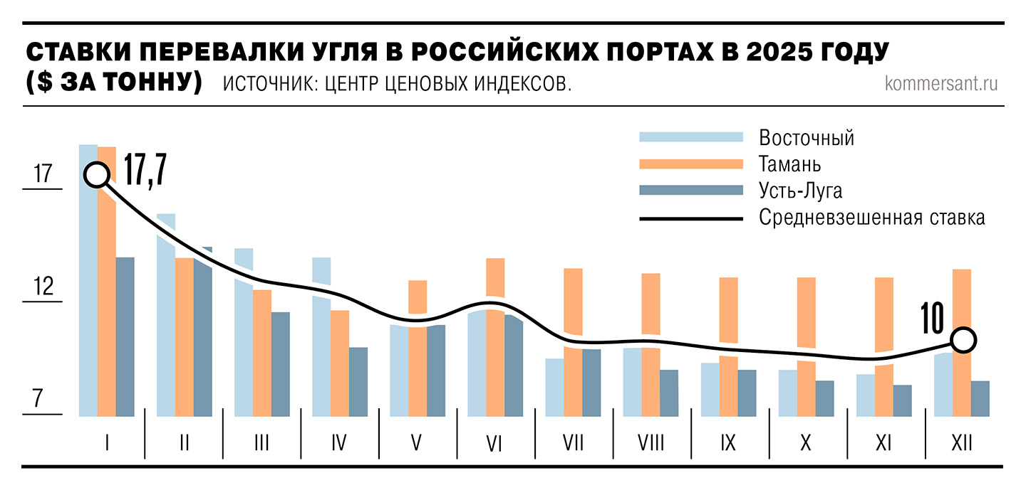 Ставки предоставления вагонов под перевозку угля под конец 2025 года также продемонстрировали точечный рост. Но, как говорит собеседник “Ъ” на рынке, тарифы выросли от состояния «очень убыточные» до просто «убыточные».